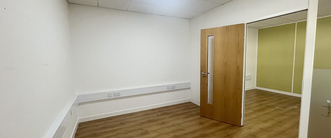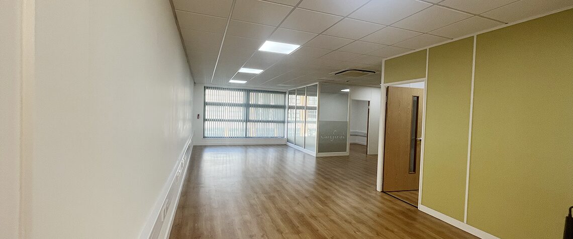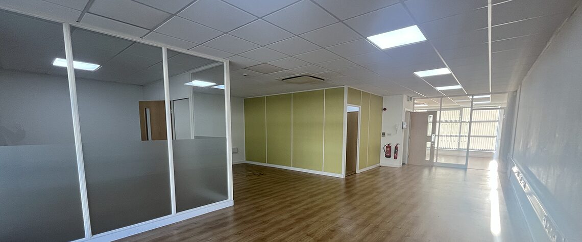 This spacious office has a prime location with its own entrance, double aspect windows to the north and south and partition walls.
