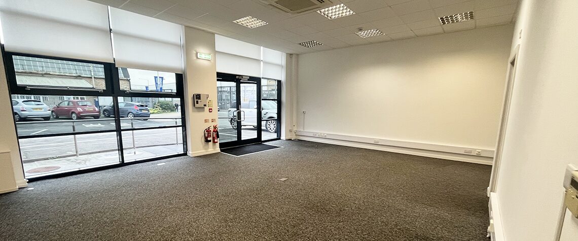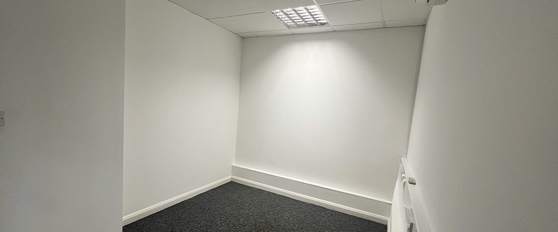 This spacious office has a prime location with its own entrance, double aspect windows to the north and south and partition walls.
